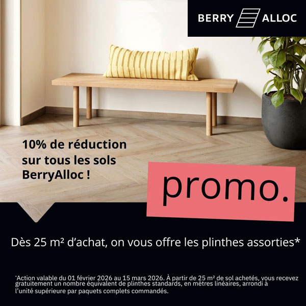 10% de remise supplémentaire + les plinthes assorties GRATUITES pour toutes commandes de min. 25 m².